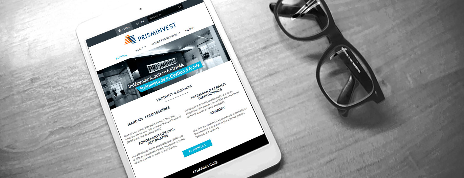 The new platform is optimised for surfers, with a pared-down design in keeping with Prisminvest's values and universe.